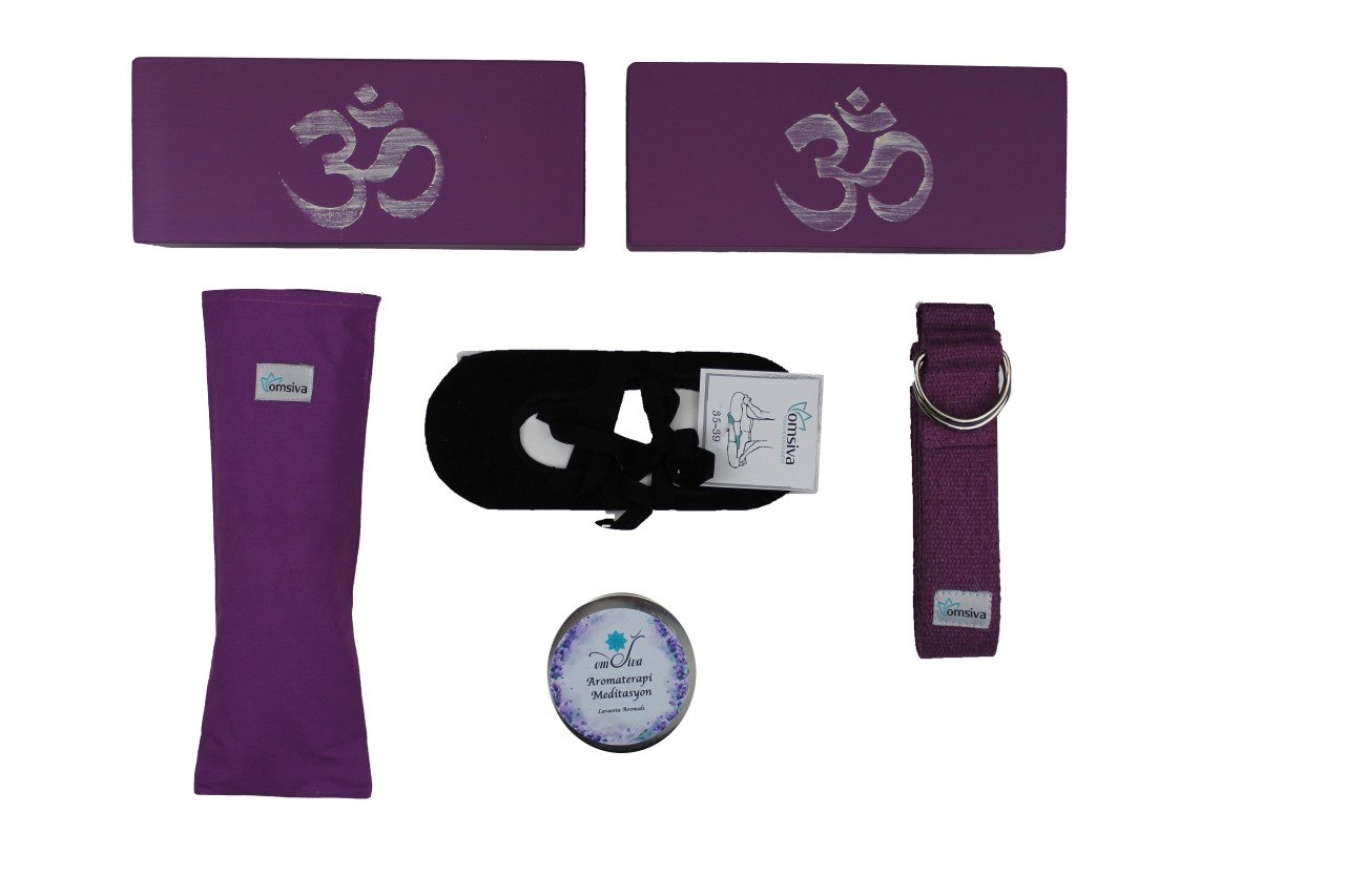 Ahşap Yoga Bloğu x 2 +Lavantalı Yoga Göz Yastığı +Yoga Kemeri + Meditasyon Mumu+ Lotus Yoga Çorabı 35/39